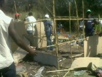 Sam ist ein blinder alter Mann und lebt allein in einem Gebüsch am Stadtrand von Harare. Zu seiner Unterkunft muss er durch eine Mülldeponie gehen. Unsere Freundin Elisabeth Makoni, ca. 70 Jahre, die zum Gebet der Gemeinschaft kommt, hat uns von ihm berichtet. Als wir Raymond kennenlernten, war er ganz allein, niemand sprach mit ihm. Er hatte sich eine ganz niedrige Unterkunft gebaut, damit sie durch den Wind nicht einstürzt. Sam konnte in seiner Unterkunft nicht aufrecht stehen, es fehlte an Essen und Wasser.